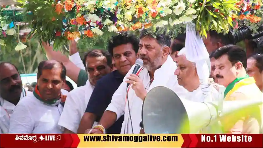 SHIMOGA : ದಾನ, ಧರ್ಮ ಮಾಡುವ ಕೈ ಅಧಿಕಾರದಲ್ಲಿದ್ದರೆ ಚಂದ. ಅದೇ ಉದ್ದೇಶದಿಂದ ಕಾಂಗ್ರೆಸ್ ಅಭ್ಯರ್ಥಿ ಗೀತಾ ಶಿವರಾಜಕುಮಾರ್ಗೆ ಮತ ನೀಡಿ ಆಶೀರ್ವದಿಸಬೇಕು ಎಂದು ಡಿಸಿಎಂ ಡಿ.ಕೆ.ಶಿವಕುಮಾರ್ ಮನವಿ ಮಾಡಿದರು.