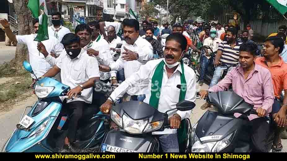 ಕೇಂದ್ರ ಮತ್ತು ರಾಜ್ಯ ಸರ್ಕಾರದ ರೈತ ವಿರೋಧಿ ನೀತಿಗಳನ್ನು ಖಂಡಿಸಿ ಕರೆ ನೀಡಿದ್ದ ಕರ್ನಾಟಕ ಬಂದ್ ಹಿನ್ನೆಲೆ, ಜೆಡಿಎಸ್ ಕಾರ್ಯಕರ್ತರು ಬೈಕ್ ರಾಲಿ ಮಾಡಿದರು.