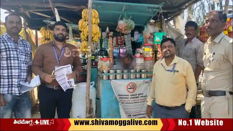 SHIMOGA : ಜಿಲ್ಲಾ ತಂಬಾಕು ನಿಯಂತ್ರಣ ಕೋಶ ಮತ್ತು ಪೊಲೀಸ್ ಇಲಾಖೆ ವತಿಯಿಂದ ಆಲ್ಕೊಳ ಸರ್ಕಲ್ ಸಮೀಪ ವಿವಿಧೆಡೆ ದಾಳಿ ನಡೆಸಲಾಯಿತು. ಕೋಟ್ಪಾ ಕಾಯ್ದೆ ಉಲ್ಲಂಘಿಸಿದವರ ವಿರುದ್ಧ 11 ಪ್ರಕರಣ ದಾಖಲು ಮಾಡಲಾಗಿದೆ. ಅಲ್ಲದೆ 1100 ರೂ. ದಂಡ ವಿಧಿಸಲಾಗಿದೆ.