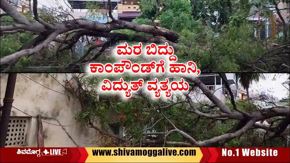 ಶಿವಮೊಗ್ಗದಲ್ಲಿ ಗಾಳಿ, ಮಳೆಗೆ ಉರುಳಿದ ಮರ, ವಿನೋಬನಗರದಲ್ಲಿ ವಿದ್ಯುತ್‌ ಕಡಿತ